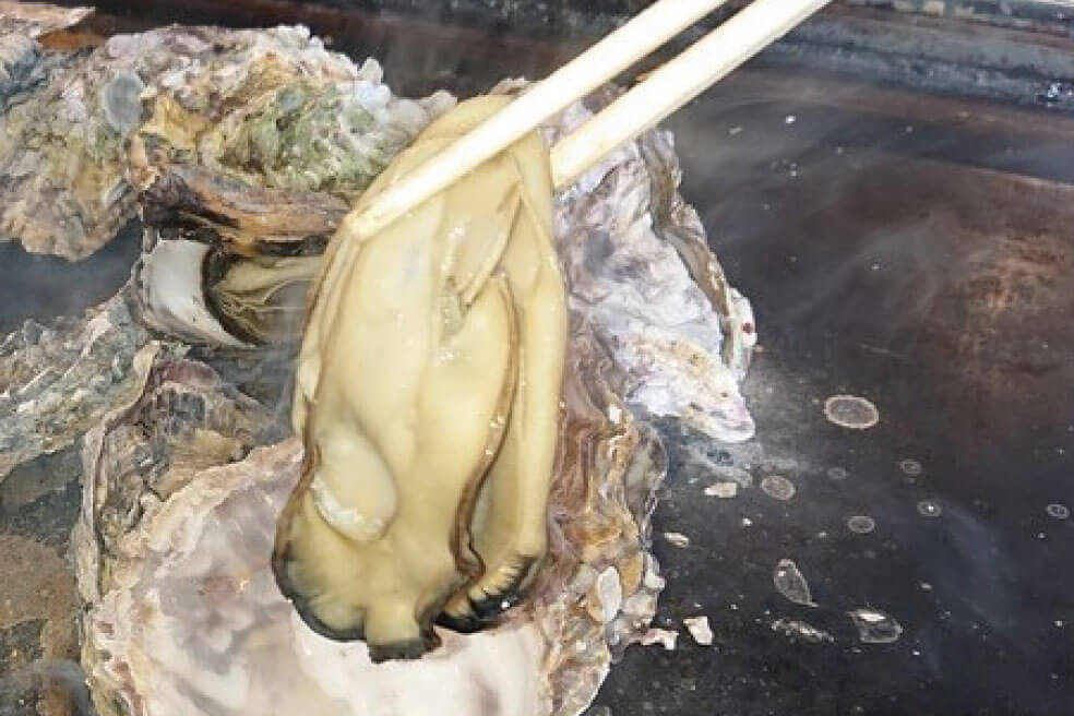 冬の「真がき」と夏の「岩がき」の時期のみ期間限定完全予約制のかき小屋へご案内!目の前で蒸し焼きにした真がきや、カキフライ、かき身入りのおにぎりやお味噌汁など、これでもかっ!てほどたくさんの牡蠣をお召し上がりいただけます。新鮮でぷりっぷりの牡蠣を豪快にお召し上がりくださいね!