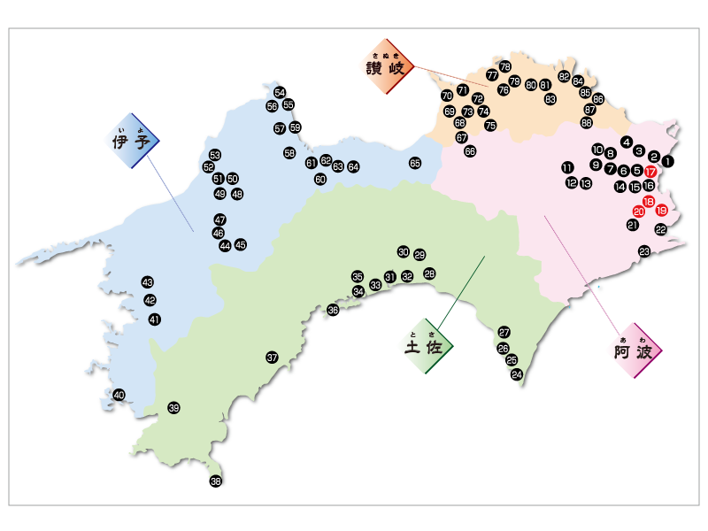 (17)井戸寺 (18)恩山寺 (19)立江寺 (20)鶴林寺