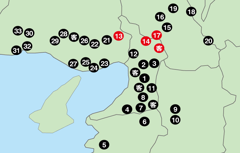 (13)満願寺(14)神峯山寺(17)楊谷寺(客)安岡寺