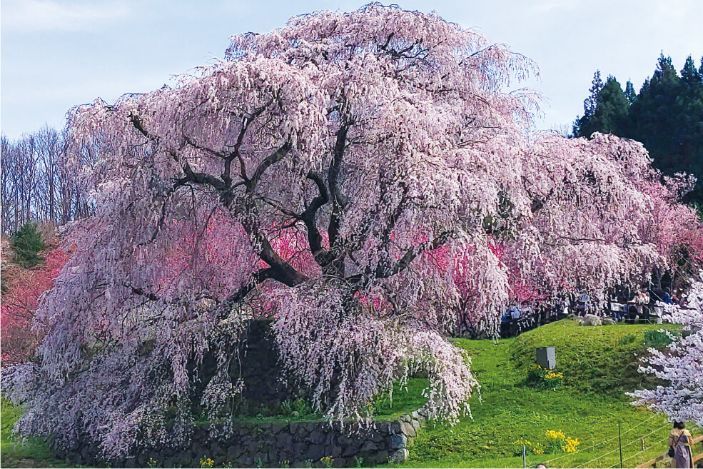 年々大きく見事に咲く高見の郷のしだれ桜。1000本余りものしだれ桜が咲き誇る標高650mの「天空の庭」でごゆっくり過ごしていただきたくて、滞在時間も長めの2時間にしています。