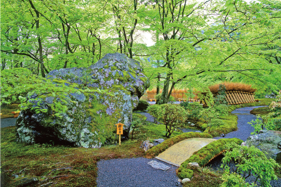 そして宝厳院の春の特別公開では嵐山を借景に回遊式山水庭園「獅子吼の庭」をご観賞。春から初夏にかけての青もみじと苔の美しさは一見の価値ありです。